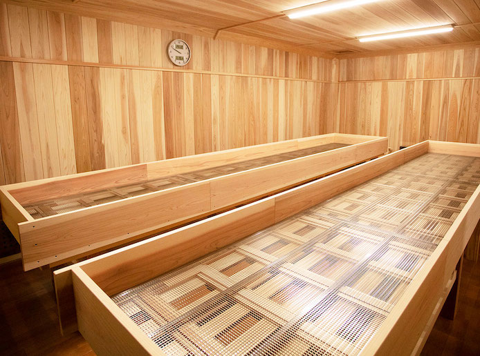 冬季醸造から四季醸造へ。 伝統的な酒造りは、自然な換気を促す酒蔵建築からはじまり、 微生物にとって最適な低温環境が整う冬場の仕事だった。 だが、市野屋が目指すのは「今」に生きる酒。 世相、市場の動向や人々の嗜好をよみ、利き、 香り、味わいも表現したい。 明治から続く酒蔵の建築構造を生かしつつ、 四季醸造を可能にする湿温管理システムを導入。 アルコール度数も繊細にデザインできるよう、 冷却装置付きタンクも完備した。 確かな技術を持つ杜氏の、発酵度合いを見極める感性と 繊細な温度管理をかなえるシステムが、 酵母と麹菌が生きる環境を整える。 そして、市野屋でしか作れない酒の表現が続く。 冬季醸造から四季醸造へ。 伝統的な酒造りは、 自然な換気を促す酒蔵建築からはじまり、 微生物にとって最適な低温環境が整う 冬場の仕事だった。 だが、市野屋が目指すのは「今」に生きる酒。 世相、市場の動向や人々の嗜好をよみ、利き、 香り、味わいも表現したい。 明治から続く酒蔵の建築構造を生かしつつ、 四季醸造を可能にする湿温管理システムを導入。 アルコール度数も繊細にデザインできるよう、 冷却装置付きタンクも完備した。 確かな技術を持つ杜氏の、 発酵度合いを見極める感性と 繊細な温度管理をかなえるシステムが、 酵母と麹菌が生きる環境を整える。 そして、市野屋でしか作れない酒の表現が続く。